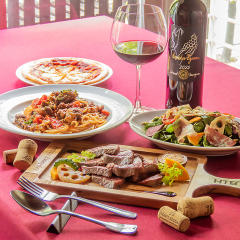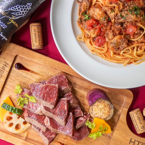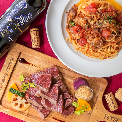 ≪昼夜対応≫岡山牛ステーキ&選べるパスタ全10品ワイン12種含む150分飲み放題付6500⇒6000円