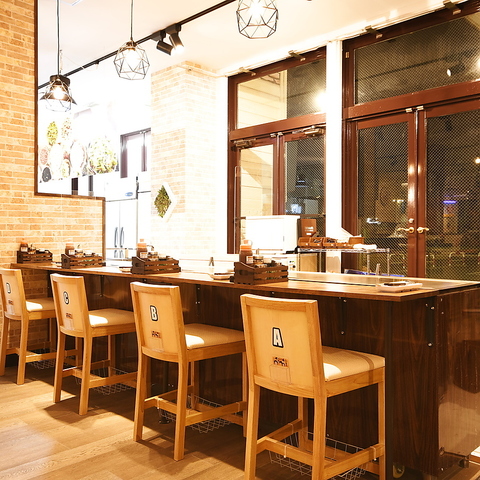 カウンター席もおすすめ! 大きな鉄板でお好みの焼き加減でお楽しみください!