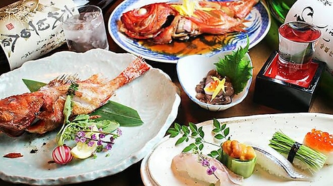 生で刺身で食べても良し、煮魚で食べても良し、焼き魚で食べても良し、握りにしても良し!その日のおすすめの素材を一番旨い調理法でご提供いたします!当店自慢の海鮮料理をお楽しみください!宴会におすすめの飲み放題付きコースもございます。
