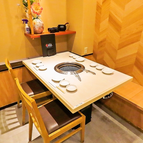 絶品焼肉と旨い酒をゆっくりとお楽しみ頂けます。温かな印象の間接照明があり、宴会や合コン、デート等にも最適なゆったり寛ぎ頂ける店内です。しっぽりとゆっくり語らいながら過ごすのも◎何かご希望がございましたら、お気軽にお声掛けくださいませ♪