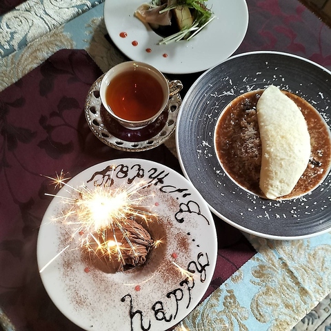 誕生日や記念日にぴったりの当店、メッセージプレート付のコースもございます♪