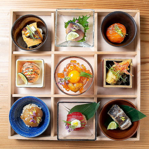 鮨にとって素材は命。食材への徹底したこだわりと、厳選された最高級のネタを味わっていただけるよう、心掛けております。より良い素材を探し、味わい深さを追求、最上のおもてなしを心掛けた逸品を、コース料理や一品料理で、是非ご賞味くださいませ