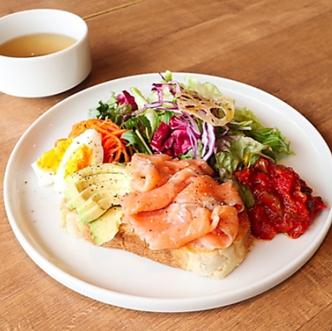 当店一番人気★ヘルシーなのに満足感◎!サーモンの旨みと新鮮野菜のシャキシャキ感が絶妙な、女性にも人気のサラダプレートです。
