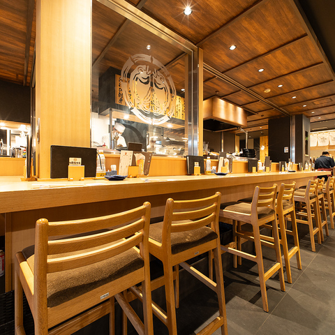 一人様も大歓迎のカウンター席となっております!調理シーンを見ながらお酒やお食事をお楽しみ頂けるのはカウンター席ならではの特権です♪お気軽にご利用下さいませ!