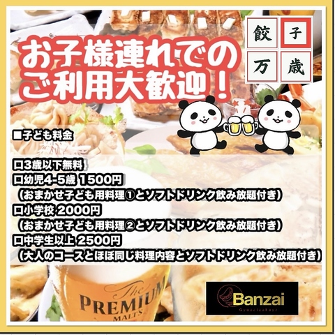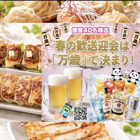 皆で盛り上げる新歓コンパや学生宴会、歓送迎会は万歳グループで!大人数もおまかせ!座敷でゆったりできる◎安心グッドな宴会場!1次会もちろん2次会にも◎盛り上がるのに最適なお店!個室は40名様迄!貸切宴会は最大80名様迄OK!当日OK2H飲放コースは3000円~5000円(税込)またお得な2次会コースは2300円(税込)飲み会で超☆ごきげんになろう♪