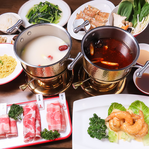 旨辛スープが食欲をそそる火鍋を囲み、至福の宴を。牛肉・ラム肉・豚バラ肉の3種類のお肉、前菜3品に1品料理、そして特製の焼き餃子。タレバーで幾通りもの味わいを楽しめる、心躍る美食体験をお届けします!各種ご宴会におすすめの90分飲み放題付きプランです♪※4名様よりご利用可能(予約制)