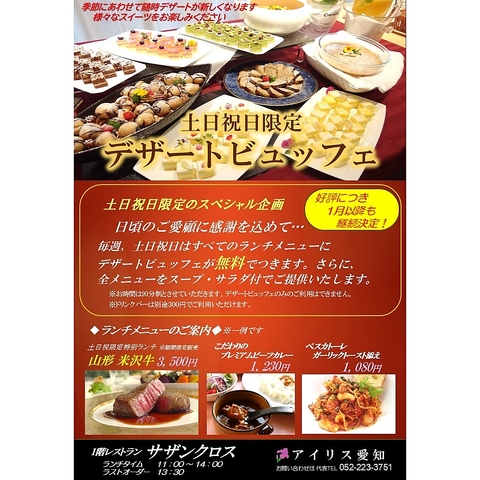 土日祝日は全てのランチにデザートビュッフェが無料で付きます