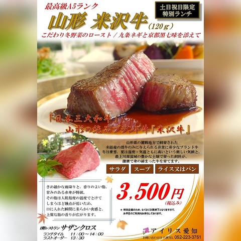 A5ランク山形米沢牛ランチ \3,500円(税込)
