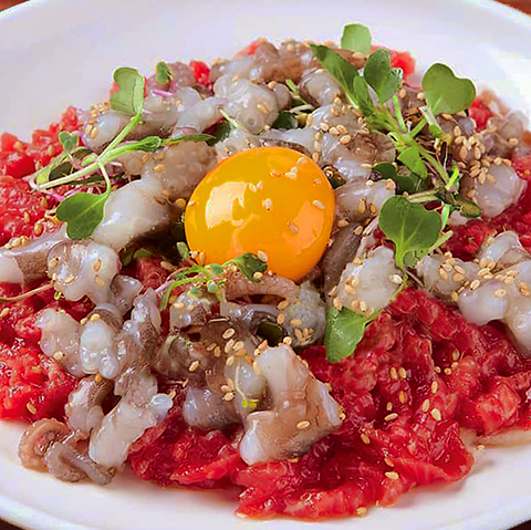 新鮮な活きタコを使ったユッケサンナクチ。韓国名物の踊り食いを楽しめる一皿。