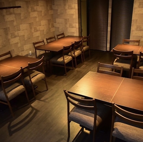 店内は温かみが感じられる、落ち着いた雰囲気のお店です。1名様からご利用いただけるカウンター席、2名様からご利用いただけるテーブル席がございます。座り心地のいい椅子をご用意しておりますので、ゆっくりとお食事を楽しんでいただけます♪
