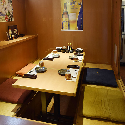 和の落ち着いた店内でゆったり宴会もOK!飲み会でも使いやすい掘りごたつ席やテーブル席、座敷がございます。まわりを気にせずゆっくりとお食事をお愉しみいただけます。飲み会、各種宴会にも是非ご利用下さい!