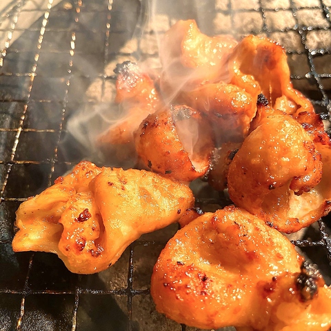 味噌で召しあがっていただくとんちゃんはよく焼きで焦げやすいので細かくひっくり返しながら育てていくような感じで (笑)新鮮で臭みのないとんちゃんは柔らかく噛みしめるほどにとんちゃんの旨味とふんわりとした甘みぜひお召し上がりいただきたい一品です。