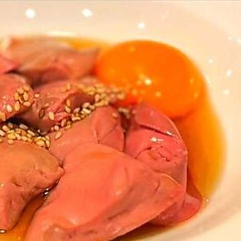 濃厚でクリーミーな鶏フォアグラを贅沢に。とろけるような口当たりに、ごま油塩の香りと旨みが絡み合い、卵黄を絡めればさらに濃厚な味わいに。
