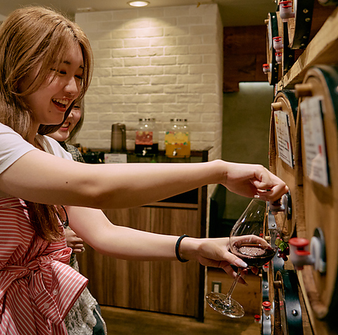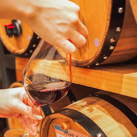 ワイン好きはもちろん、初心者の方こそ必見!美味しく楽しい、コスパ自慢の隠れ家ワインバル。30分429円~、10カ国50種もの樽ワインが飲み放題♪1口から好きな量注いで楽しめるので、自分の「好き」を見つけてみては?その他のドリンクも豊富にご用意。合わせる料理は、ワインと相性抜群&ボリュームも満足度も◎