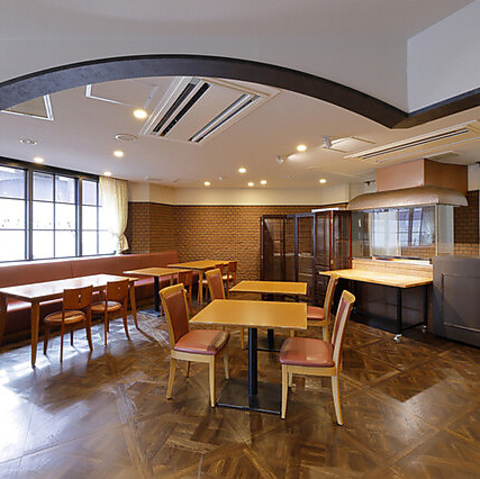 木の質感あふれるテーブルやレンガ調の壁が、落ち着いた大人の雰囲気を演出します。広々とした店内には大きな窓から柔らかな光が差し込みランチを楽しめます。「レストラン愛」の名の通り、温もりに満ちた心地よい空間でお寛ぎください。