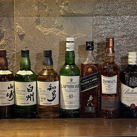 | ウイスキー | 角瓶/知多/ジムビーム/メーカーズマーク/グレングラント アルボラリス/デュワーズ12年/ジェムソン/バスカー |