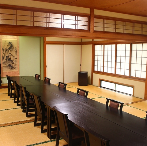 | 座敷 | 24名様×1 | 52畳以上の舞台付大広間もあります。テーブル・イスでの宴会や法事等の大人数での会食にもご利用頂けます。事前にご相談下さい。 |