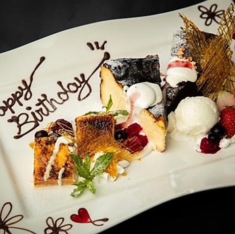 特別な誕生日・記念日のお食事には特製のデザートプレートをご用意いたします。事前にご予約くださいませ◎