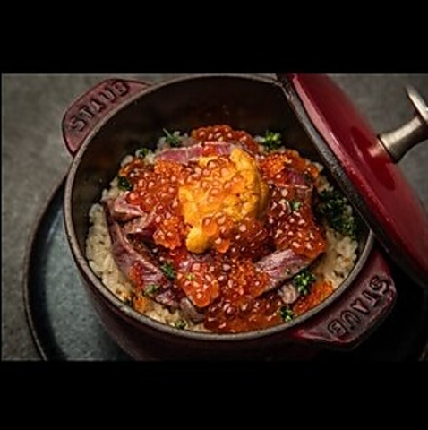 旬の食材を厳選し、本場フランスの鋳物鍋で一気に炊き上げる自慢の炊き込みご飯。素材の水分を逃さず閉じ込めることで、ふっくらとジューシーな食感を実現しました!蓋を開けた瞬間に立ち上る湯気と香りが食欲をそそります♪四季の恵みを感じられる当店ならではの料理。