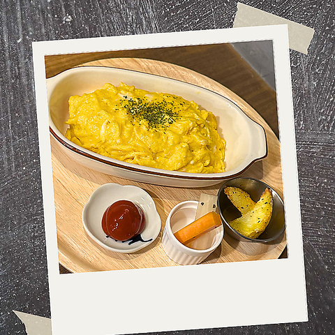 卵に、グラスフェッド・ギーを使ってコクとうまみをアップさせたとろとろオムライス。昭和の洋食屋さんのようなケチャップライス&たっぷりチーズがおいしい!と女性にも人気です。