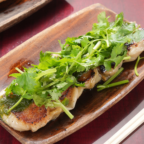 自家製のモチモチの皮を使用した焼き餃子!一口食べれば溢れだすジューシーな旨汁がたまらない一品!お酒も進むこちらの一品はぜひ各種宴会にも最適です♪熱い想いも包み込んだ渾身の逸品をぜひご賞味ください!特製ゴマダレで食べるのもおススメです!