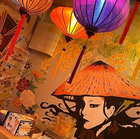 【こだわりの内装空間をご提供!】まるで海外旅行をしているような、ワクワクする店内も自慢です!特別なひと時を料理と共に演出してくれます!台湾屋台のようなアットホームな雰囲気でワイワイ盛り上がりながら、自慢の餃子・点心と様々なタパスをお楽しみください♪