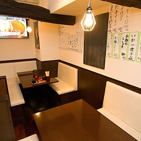 カウンター席から広々としたテーブル席、半個室のソファー席など様々なお席をご用意しています。お仕事仲間やご友人との飲み会はもちろん、お仕事帰りにふらっと立ち寄って飲みたい!そんなときもお気軽にお越しいただける雰囲気のお店です!美味しいお料理とお酒をご用意して、お待ちしております♪