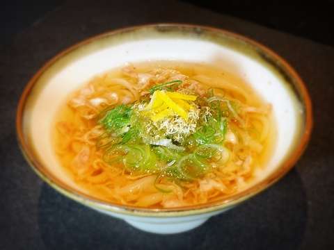 大阪名物「かすうどん」とは、牛の小腸を油でじっくり時間をかけて揚げた「油かす」が入ったうどんです。鰹の風味の効いた出汁に、ジワジワトロける油かすのコクと香ばしさが相性抜群の大阪南河内発祥のソウルフード、クセになる味です。