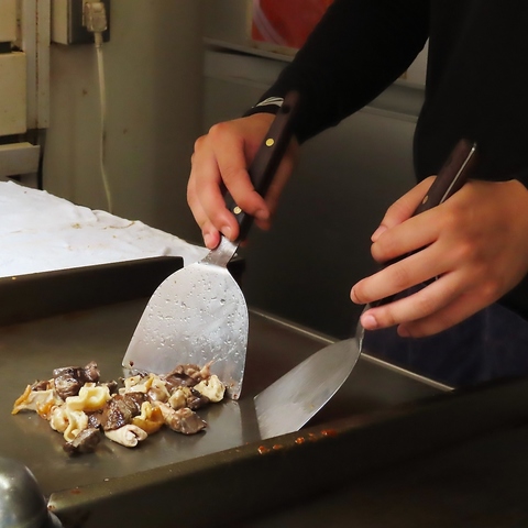 大阪西成を彷彿とさせるホルモン焼きは当店の屋台で焼いてご提供します。ホルモン焼きは部位ごとに注文可能です。。へそならではお一人様でもお楽しみ頂けるようにチョッとづつサイズでご提供致します。希少部位もご用意しています。迷ったら「本日のミックス」でお好きな部位を探してみては?