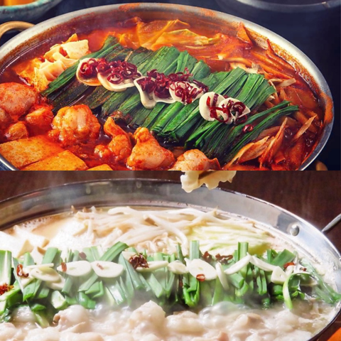 牛鶏白湯or旨辛ユッケジャン2種から選べるもつ鍋で、新鮮なもつと旨味たっぷりのスープをお楽しみください!