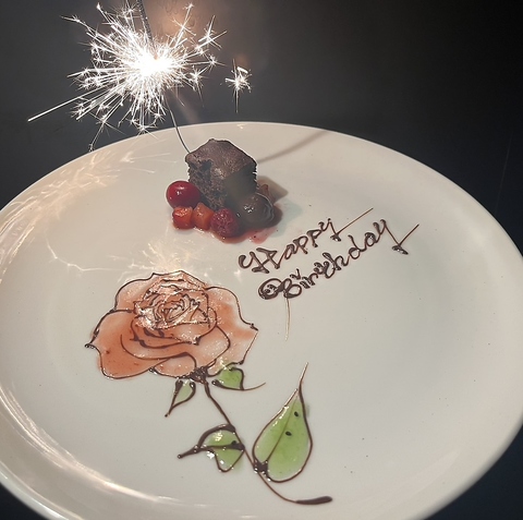 大切な方へのお祝いのシーンではデザートプレートをご用意致します。事前のご連絡でメッセージも付けさせていただきます。