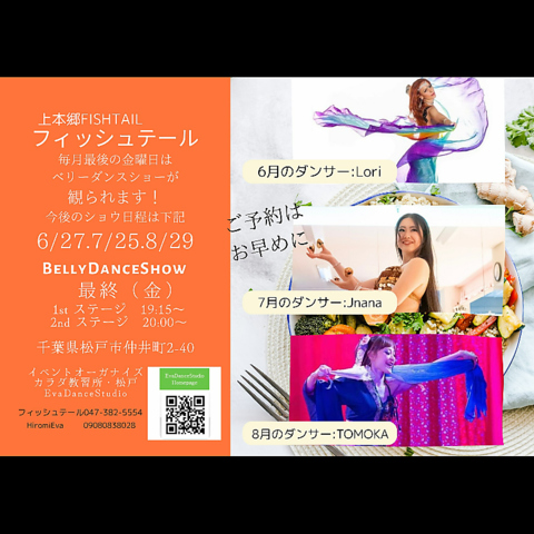 毎月最終金曜19時~はベリーダンスショーが観られます☆是非お食事と共に優雅なひと時をお楽しみください♪