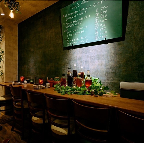 落ち着いた照明の中でゆったりとくつろぎながらお食事はいかがでしょうか。カウンター席もございますのでおひとり様、2名様、グループでのお食事会にも。