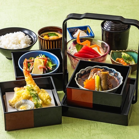 籠に入った季節替わりのお献立「音戸御膳」