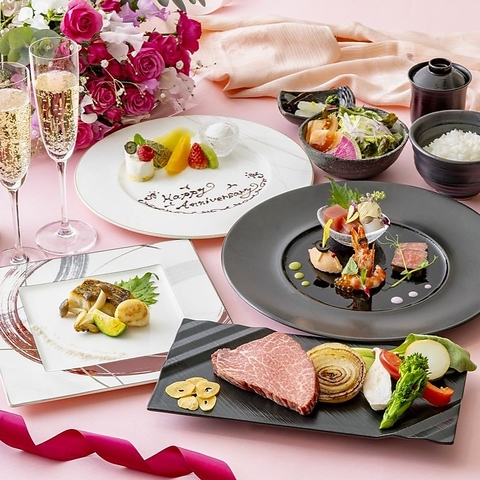 魚介と広島牛が堪能できるアニバーサリープラン「百合」※乾杯スパーク・記念写真・花束付