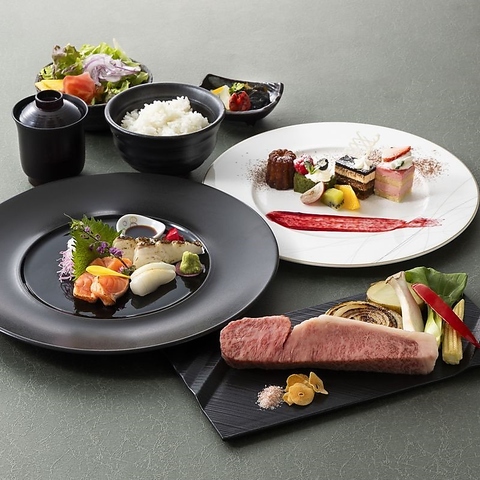 呉市街と休山を眺めながら、目の前で豪快に焼き上げる最高級ブランドの和牛や海の幸をお召し上がりいただけます。広島の豊かな食材や季節を感じるコースでご案内します。