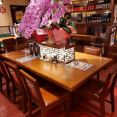 異国情緒溢れる店内で、ゆったりと寛げるシックなソファテーブル席をご用意しております。赤を基調とした華やかな空間の中でも雰囲気が異なり、心行くまでごゆっくりお過ごしいただけます。本場北京より買い付けた調度品が非日常を演出し、忘年会・新年会・会食等、幅広いご宴会・ご会食に最適です。