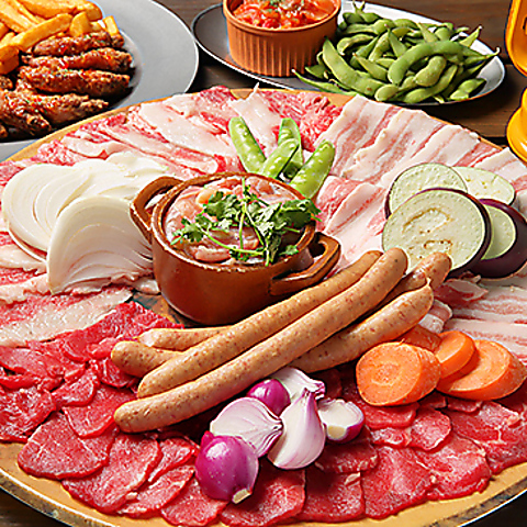 鮮度抜群の野菜や、旨味たっぷりのビーフやポークなど、素材の持ち味を存分に楽しんでいただけるよう、BBQスタイルでお召し上がりいただきます。