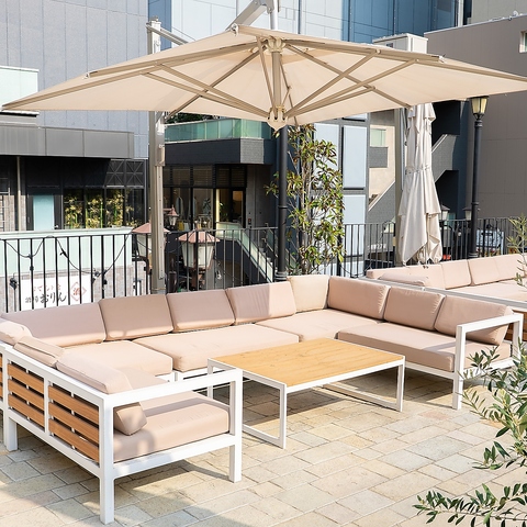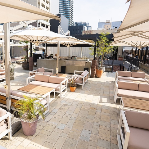 【ソファー席|4-10名様】ランチも最高!大人が集う"秘密の邸宅"。事前準備は一切不要、手ぶらでBBQをお楽しみいただけるので、ランチからディナーまで様々なシーンでご利用いただけます。都会の中心で夜風を感じながら、自分へのご褒美にオアシスタイムを♪