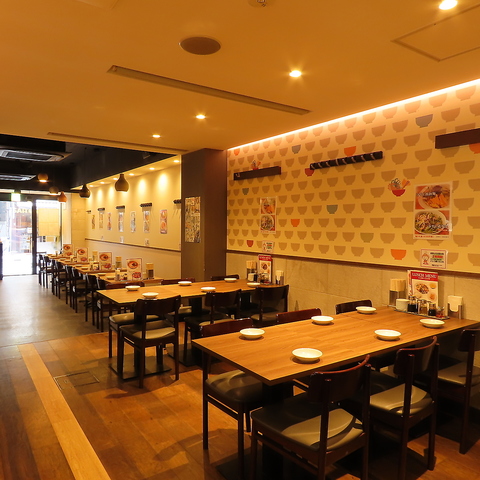 広々としたテーブル席は、グループでの食事に最適。明るい照明と温かみのある内装が、心地よい空間を演出します。おしゃべりを楽しみながら、ゆっくりとした時間を過ごせます!