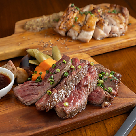 当店では、ワインの"ぶどう粕"を加えた穀物飼料を与える”葡萄牛”をご用意!長期間大切に飼育されたオーストラリア産牛肉です。臭みがなく、コクと風味が豊かな逸品をご堪能ください。100g・150gから選べます◎ハンバーグ・チキンステーキ・牛肉巻き3種、4種をご用意しており、大変人気です!