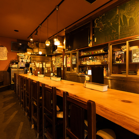 【サクッと一杯、おひとり様も大歓迎!ふらっと立ち寄れる気軽なカウンター席をご用意】西荻窪駅から徒歩2分。ペッコリーノのカウンター席は、お仕事帰りの一杯や2軒目利用にぴったり。名物「イタとん」や「腹ペコポテサラ」などのおつまみと一緒に、気軽に一人飲みを楽しめる居心地の良い空間です。