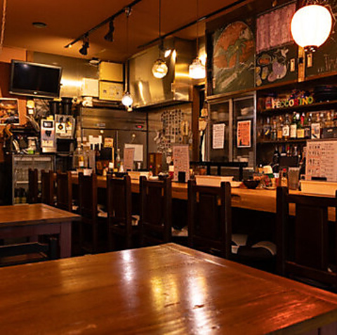 【カウンター席】目の前に調理場があるライブ感溢れるカウンター席です。お一人様でのちょい飲みやデートなどのシーンにおすすめとなっております。