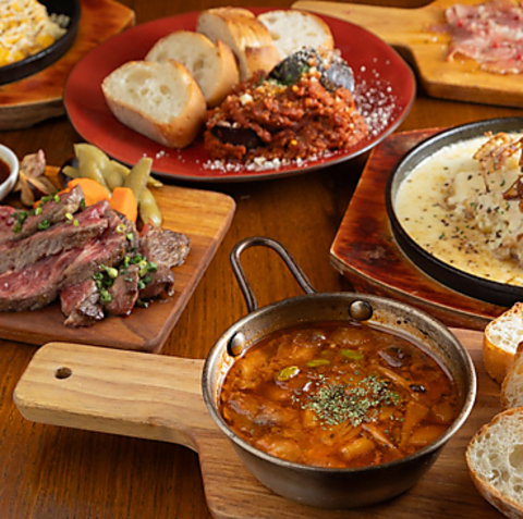 前菜から〆まで満足感たっぷりのコースに、ワインやサワーなどが飲み放題でついて5,000円。2階フロアは貸切もOKで、団体利用も大歓迎!お得な幹事クーポンもございます。2時間の飲み放題付きで、会社宴会・女子会・ご友人との集まりなど、さまざまなシーンにおすすめ。
