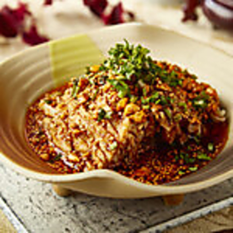 しっとりと火入れした国産鶏に、自家製の香味辣油と花椒のしびれが絶妙に絡む、蘭こだわりの一皿。香味野菜と数種のスパイスを丁寧に重ねた特製タレは、深いコクと爽やかな辛味が特徴。本場四川の技法に、蘭ならではの繊細なアレンジを加えた、まさに“よだれが出るほど美味しい”前菜です。
