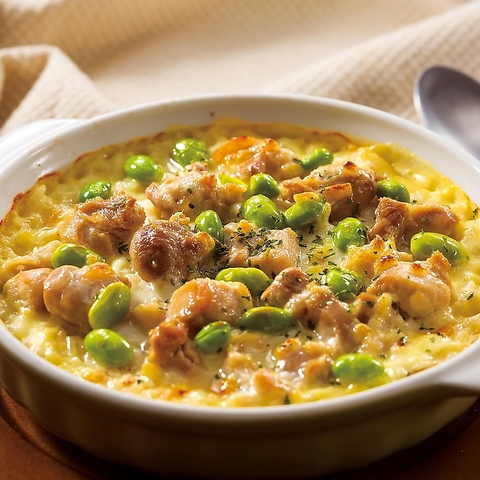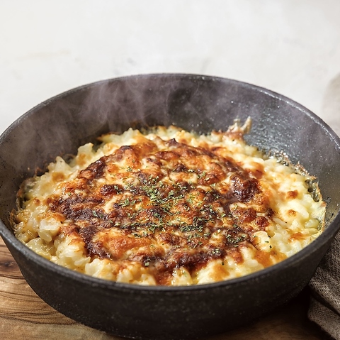 4種のチーズの個性が織りなすハーモニーと、こんがりグリルチキンの相性がバツグンなドリアです。プラス220円(税込)で大盛りにも♪熱々の状態でご提供しております。とろ~り伸びるチーズがたっぷり入ったドリアは絶品です◎