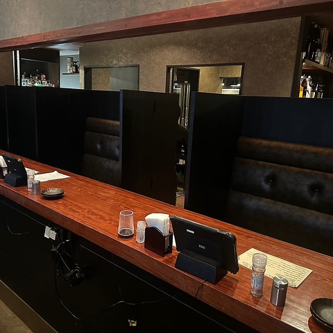 2名掛けソファのカウンター席はカップルに人気のお席♪落ち着いた大人の雰囲気はデートや語らいにも最適。肩を並べて楽しんで…
