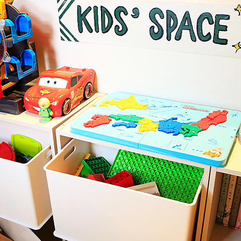 お子様大喜び、ママとパパも安心のキッズルームです。お子様がおもちゃで遊べるスペースとテーブルがすぐ横にあります。