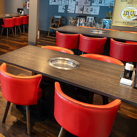 【テーブル席 6×5】当店のテーブル席は、最大6人まで利用可能な広々としたスペースです!友達や家族と一緒に焼肉を楽しむには最適な環境を整えています♪ふかふかの椅子に座りながら、焼きたてのお肉を囲むことで、会話も弾むことでしょう。特別な日のお祝いにもぴったりな場所です!笑顔あふれるひとときを是非ここで♪