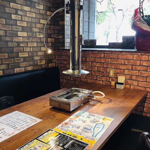 新守谷駅 徒歩約5分の『焼肉 おとぼけ』の店内は、仕切りや換気ダクトで感染症対策をしておりますので、安心してお過ごしいただけます♪テーブル・席間隔も空け、ロールカーテンで仕切られているので周りを気にせずお食事をお楽しみいただけます!!